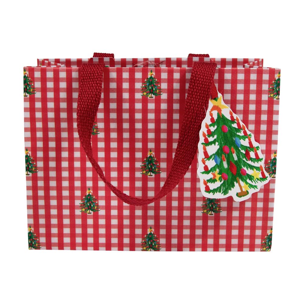Caspari Christmas Tree Gingham Small Gift Bag, 1 Count