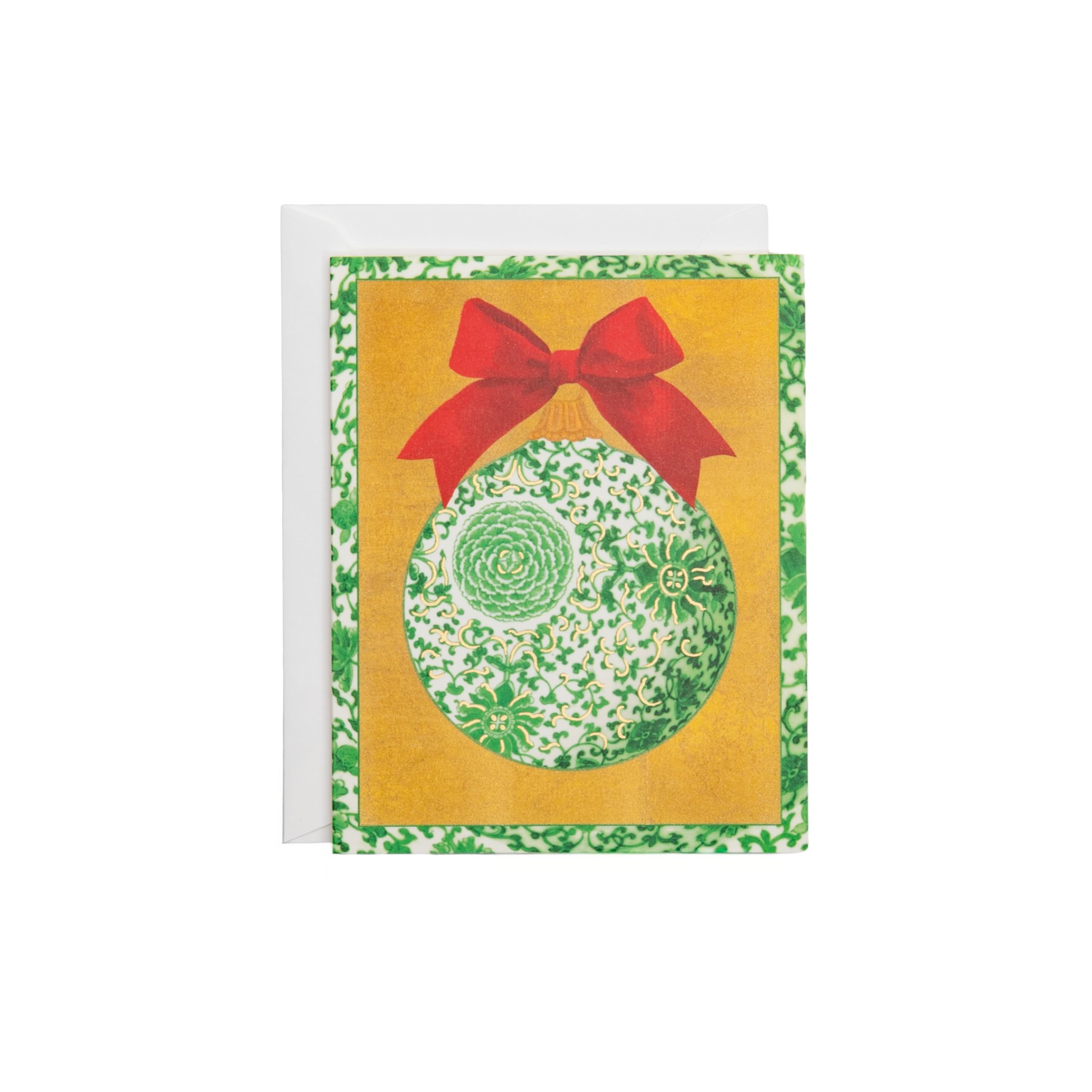 Caspari Green Ceramic Ornament Petite Boxed Christmas Cards - includes 15 cards & envelopes