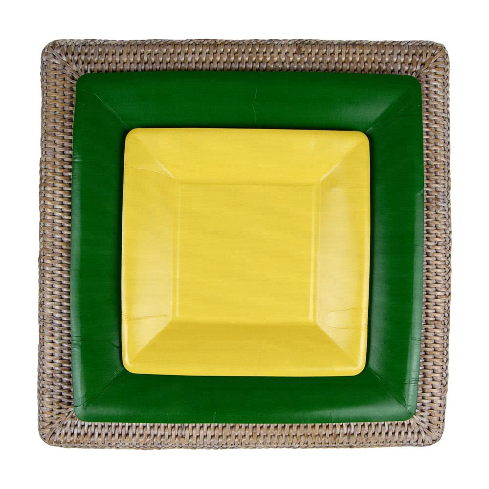 Caspari Grosgrain Square Paper Salad & Dessert Plates in Yellow, Two Packs of 8